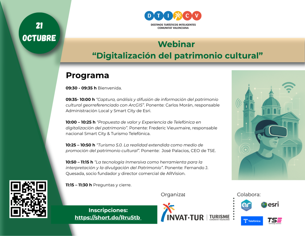 Fecha 21 Oct 2025 ¡Caducado! Hora 09:30 - 11:30 Webinar “Digitalización del patrimonio cultural” Compartir este evento + Añadir Google Calendar + exportación iCal / Outlook El evento está terminado.